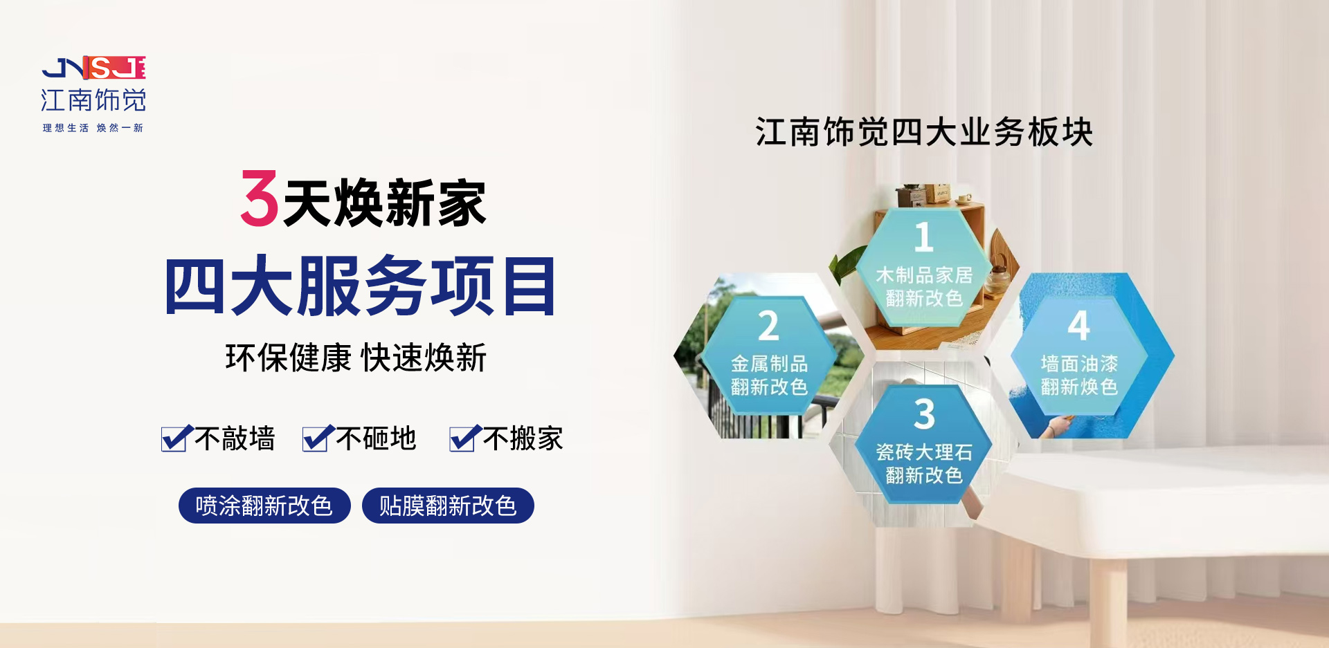 品牌介紹BRAND INTRODUCTION江南飾覺家居煥新連鎖品牌誕生于2023年,由浙江家居修護行業優秀一眾人士共同創建,總部坐落于浙江溫州,是一家專業致力于家居煥新改造連鎖品牌,老房陳舊裝修家居煥新、省錢、省心、快捷、實現煥新家,為消費者打造高···